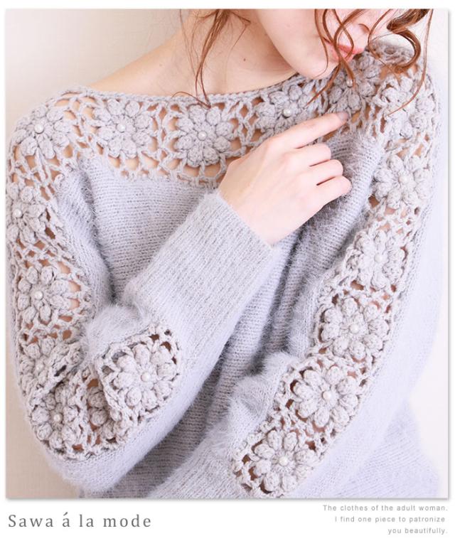 秋新着 サワアラモード 花レース編みが可愛いフェミニンニットトップス レディース ファッション トップス グレー 花 レース ニット 長袖の通販はau Pay マーケット Sawa A La Mode サワアラモード