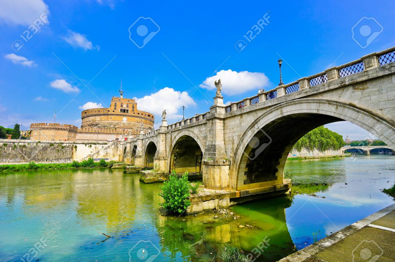 ローマ市内の古代遺跡 イタリア テヴェレ川に架かるサンタンジェロ橋とサンタンジェロ城 Stock Photo Adobe Stock